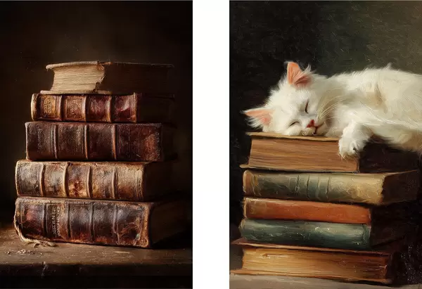 Poster Katze auf Büchern d00919