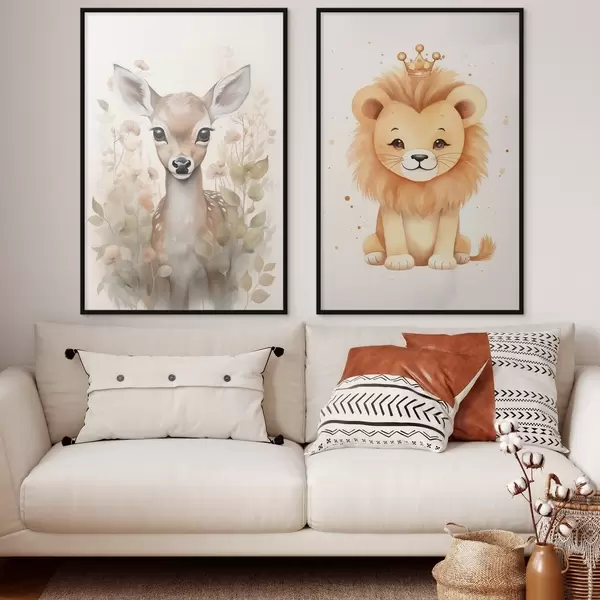 Poster Hirsch und Löwe d00922