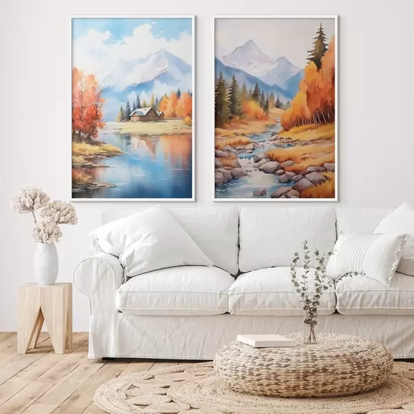 Poster Herbstliche Berglandschaft mit See und Fluss Nr d00929