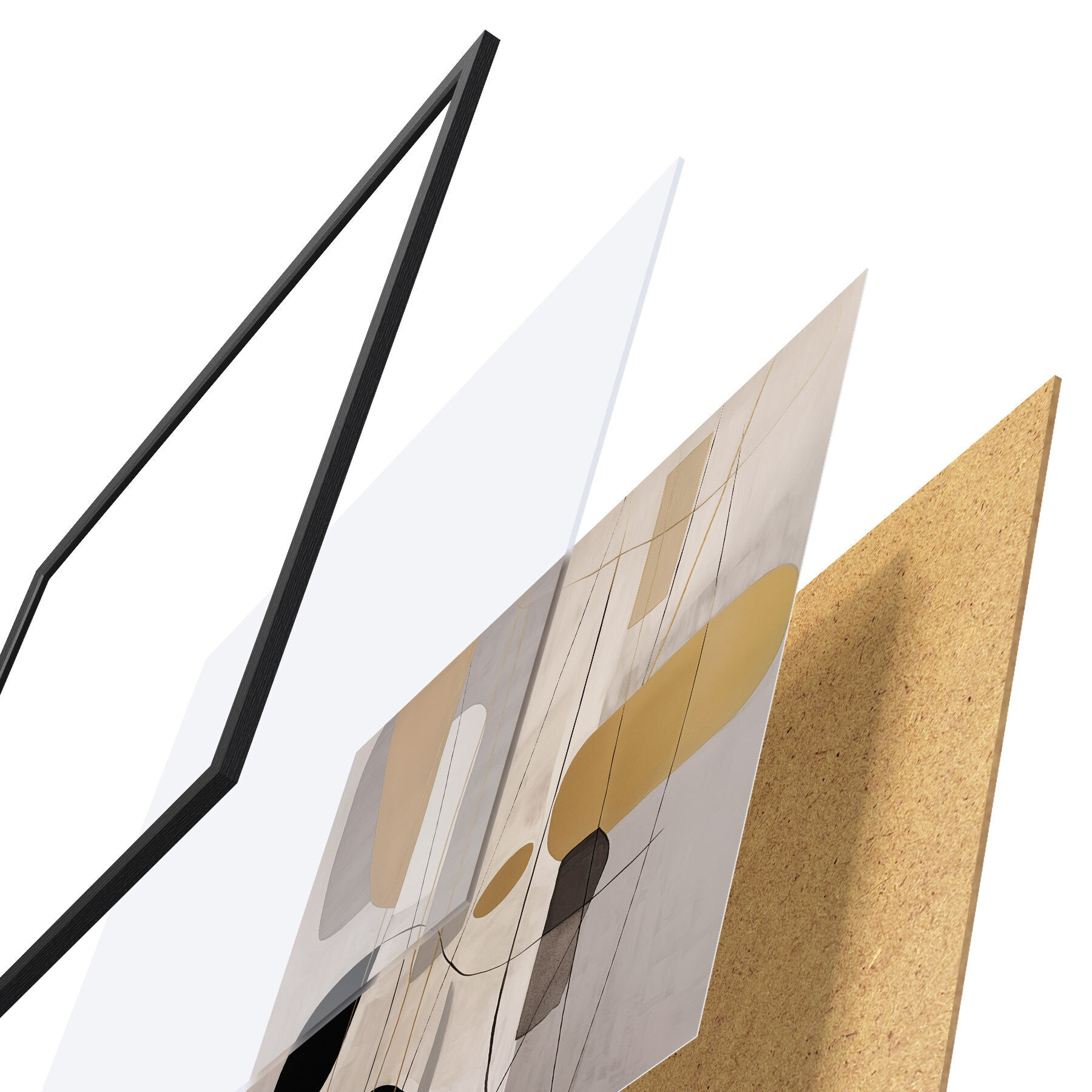 Das Poster besteht aus einem Rahmen, Plexiglas, einem gedruckten Bild und einer Rückwand aus Spanplatten. Dank der Halterungen auf der Rückseite kann das Poster sofort an die Wand gehängt werden.