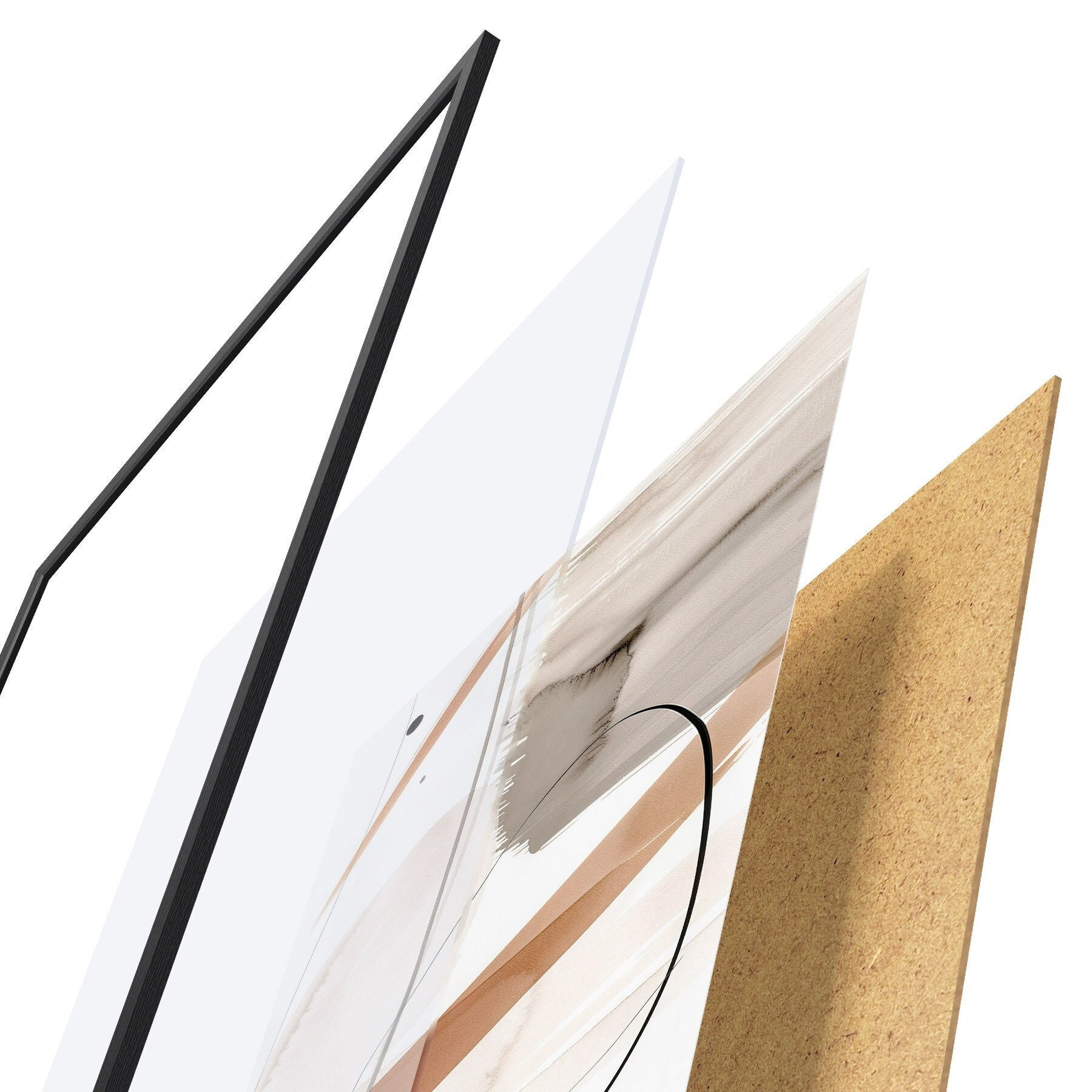 Das Poster besteht aus einem Rahmen, Plexiglas, einem gedruckten Bild und einer Rückwand aus Spanplatten. Dank der Halterungen auf der Rückseite kann das Poster sofort an die Wand gehängt werden.