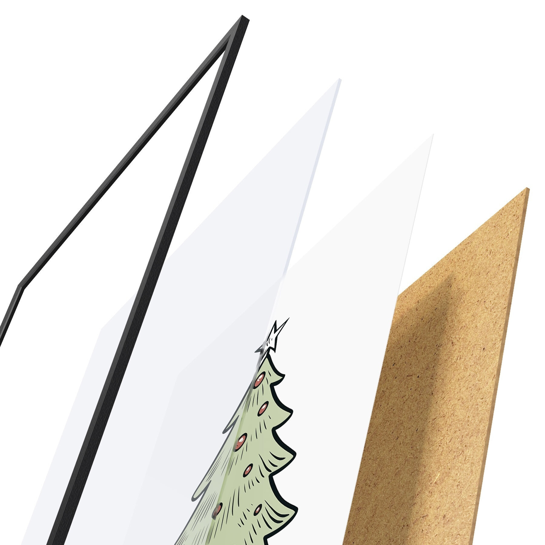 Das Poster besteht aus einem Rahmen, Plexiglas, einem gedruckten Bild und einer Rückwand aus Spanplatten. Dank der Halterungen auf der Rückseite kann das Poster sofort an die Wand gehängt werden.