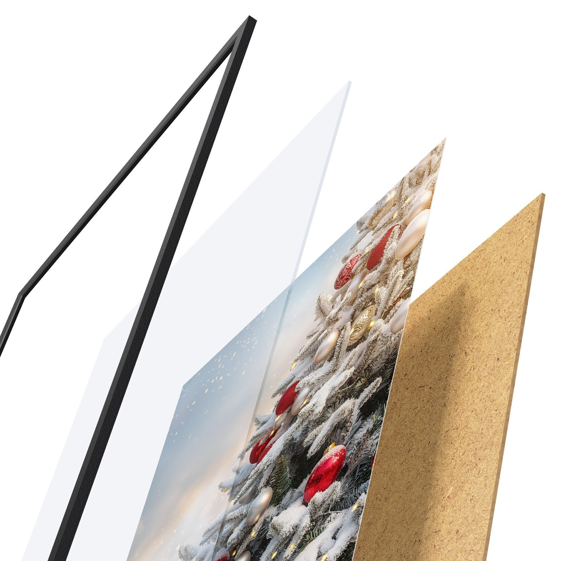 Das Poster besteht aus einem Rahmen, Plexiglas, einem gedruckten Bild und einer Rückwand aus Spanplatten. Dank der Halterungen auf der Rückseite kann das Poster sofort an die Wand gehängt werden.