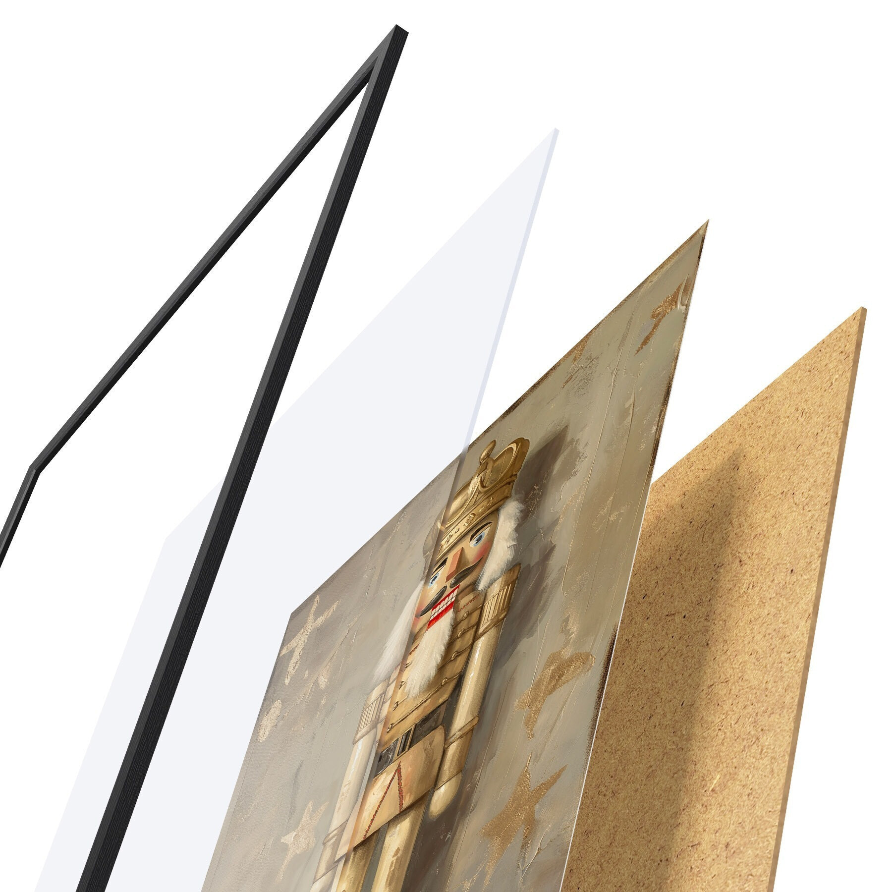 Das Poster besteht aus einem Rahmen, Plexiglas, einem gedruckten Bild und einer Rückwand aus Spanplatten. Dank der Halterungen auf der Rückseite kann das Poster sofort an die Wand gehängt werden.