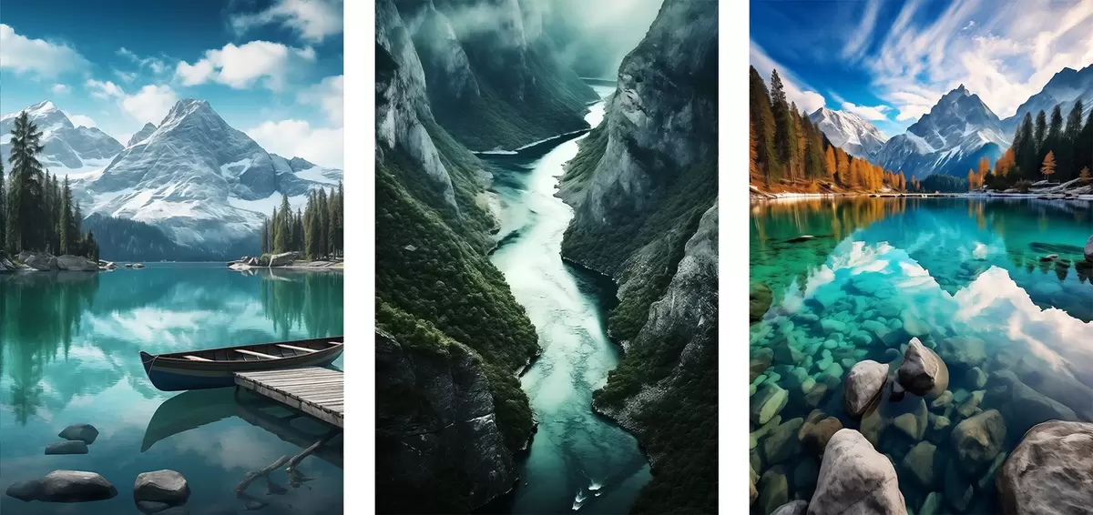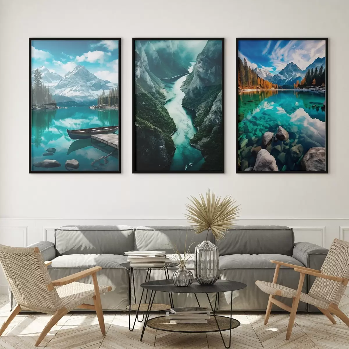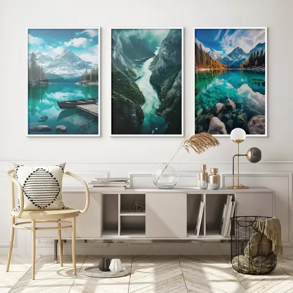 Poster Alpenseen und Fjordaussichten in kühlen Blaugrüntönen Nr d00961