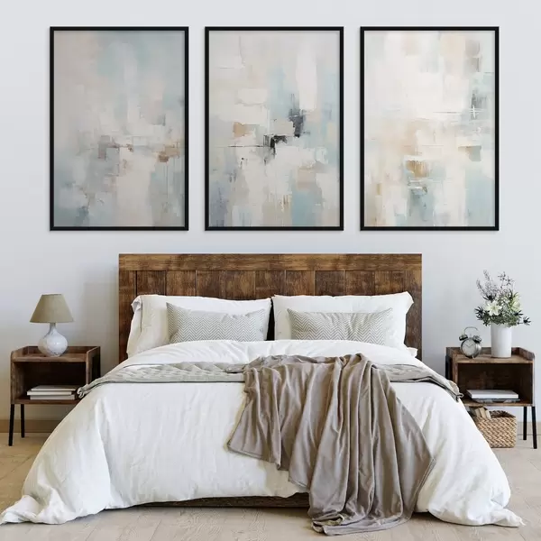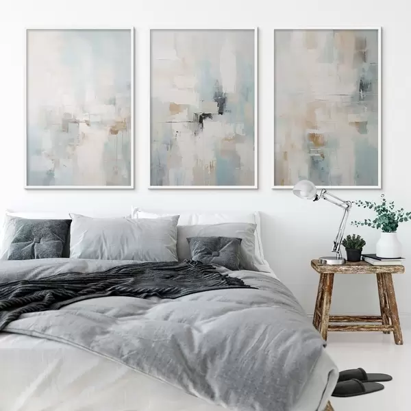 Poster Luftige, abstrakte Farbpalette: Weiß, Beige und Hellblau d00966