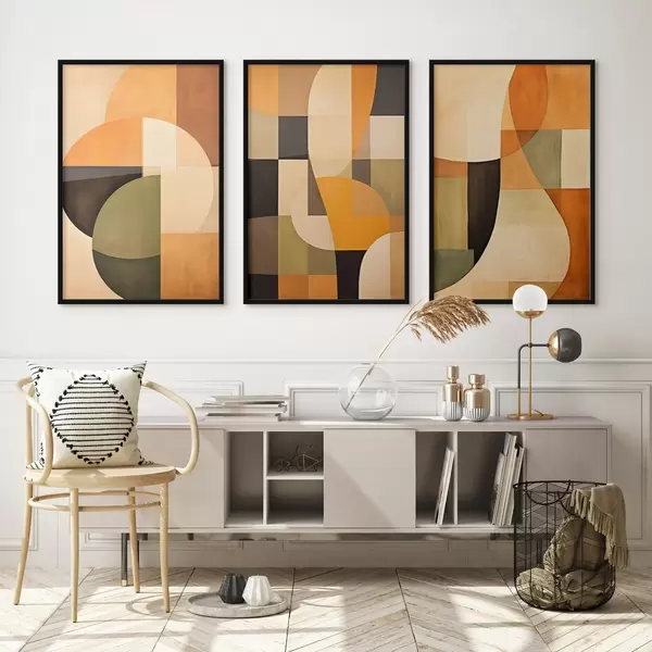 Poster Weiche geometrische Blöcke in Beige, Terrakotta und Salbei d00975