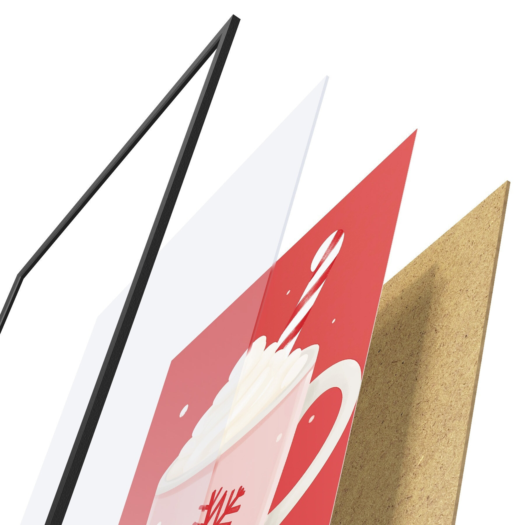 Das Poster besteht aus einem Rahmen, Plexiglas, einem gedruckten Bild und einer Rückwand aus Spanplatten. Dank der Halterungen auf der Rückseite kann das Poster sofort an die Wand gehängt werden.