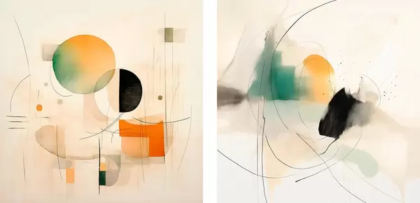 Poster Abstraktes Diptychon mit kreisförmigen Formen und dynamischen Linien Nr d00981