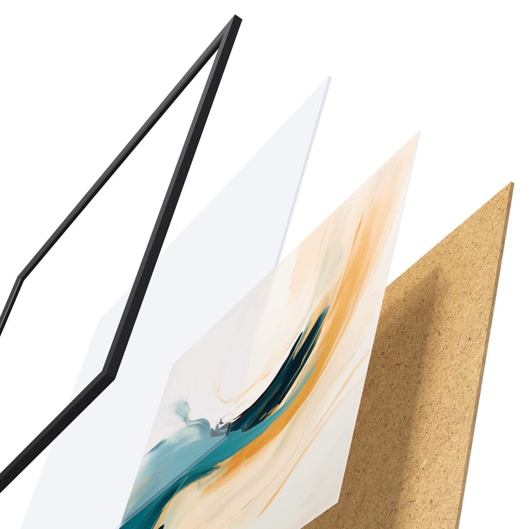 Das Poster besteht aus einem Rahmen, Plexiglas, einem gedruckten Bild und einer Rückwand aus Spanplatten. Dank der Halterungen auf der Rückseite kann das Poster sofort an die Wand gehängt werden.