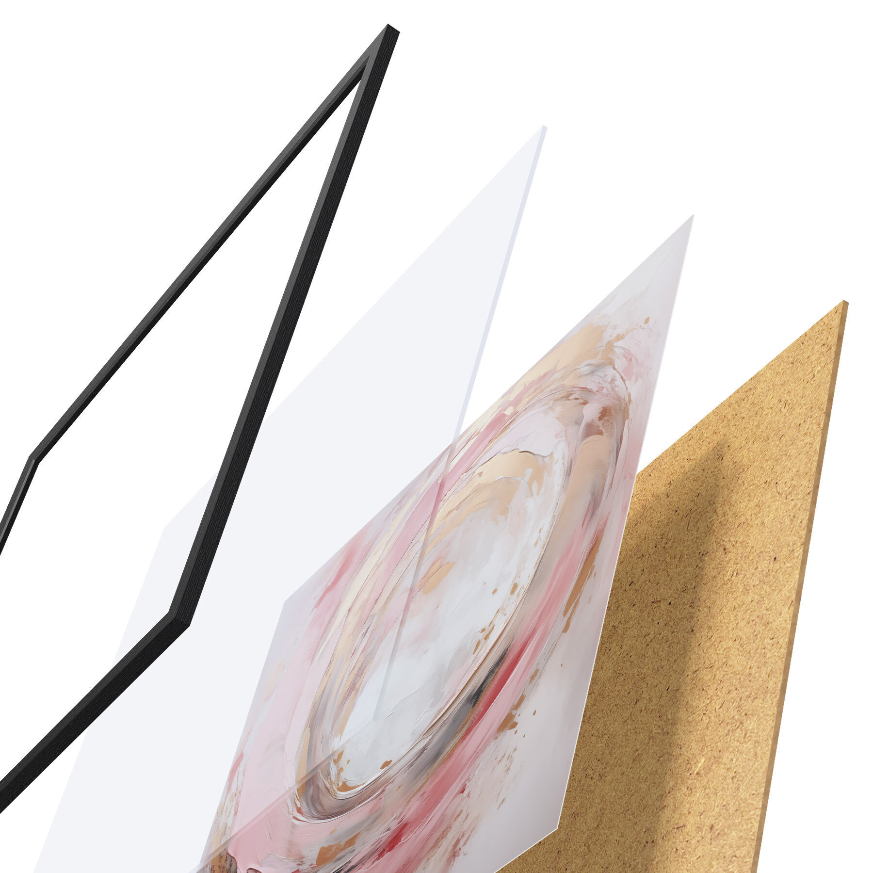 Das Poster besteht aus einem Rahmen, Plexiglas, einem gedruckten Bild und einer Rückwand aus Spanplatten. Dank der Halterungen auf der Rückseite kann das Poster sofort an die Wand gehängt werden.