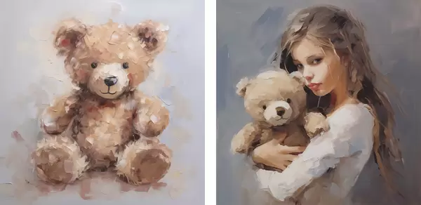 Poster Mädchen mit einem Spielzeugbären, Gemäldeimitation Nr d01029