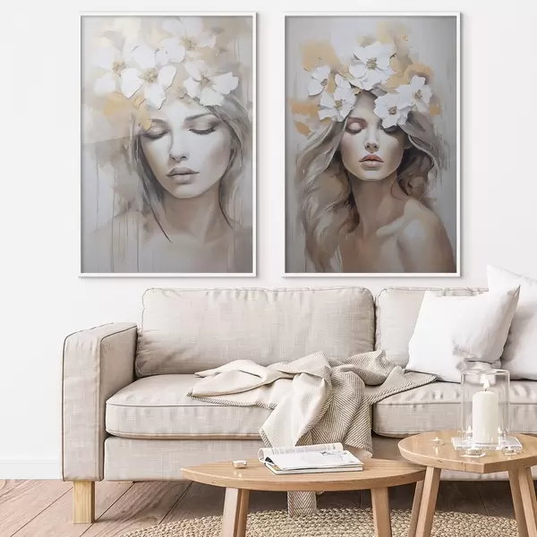 Poster Abstraktes Porträt eines Mädchens mit Blumen, Nachahmung eines Gemäldes Nr d01034