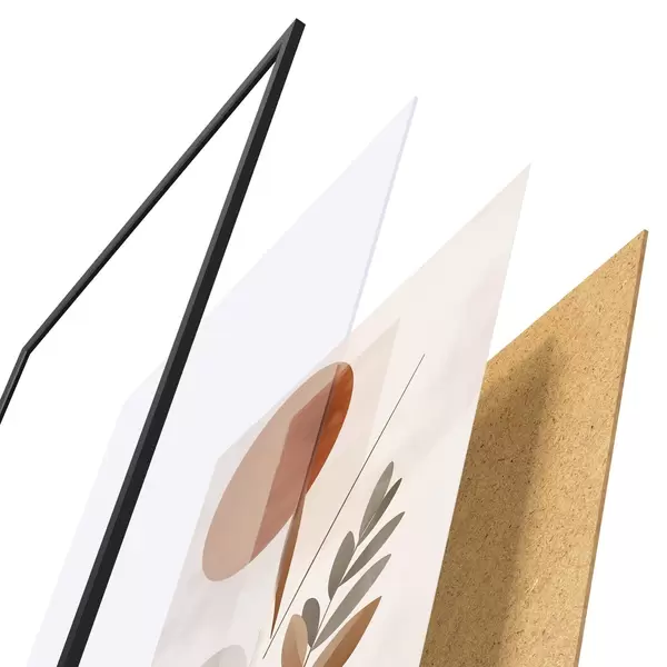 Das Poster besteht aus einem Rahmen, Plexiglas, einem gedruckten Bild und einer Rückwand aus Spanplatten. Dank der Halterungen auf der Rückseite kann das Poster sofort an die Wand gehängt werden.