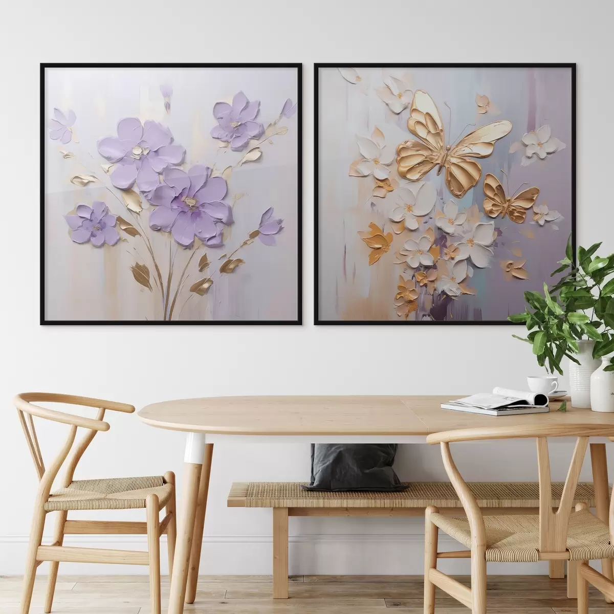 Poster Schmetterlinge und Blumen Imitationsmalerei d01046