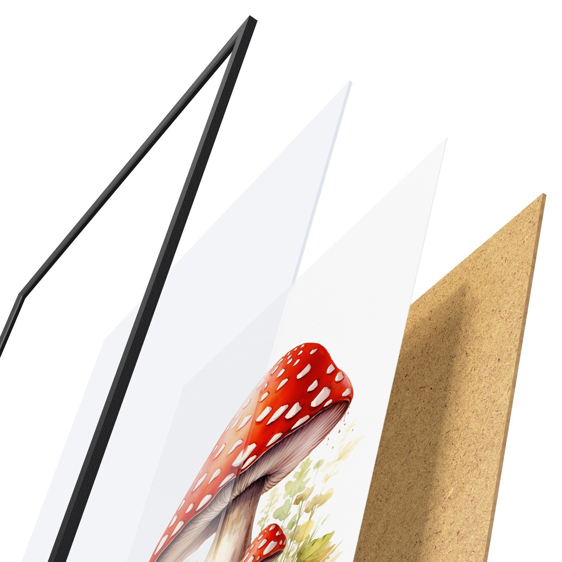 Poster Eichhörnchen und Waldpilz, Fliegenpilz, Aquarellimitation d01049