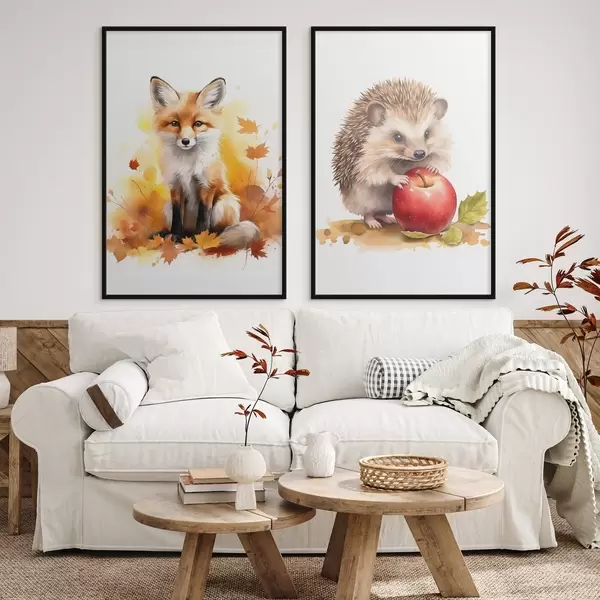 Poster Fuchs und Igel, Aquarellimitation d01050