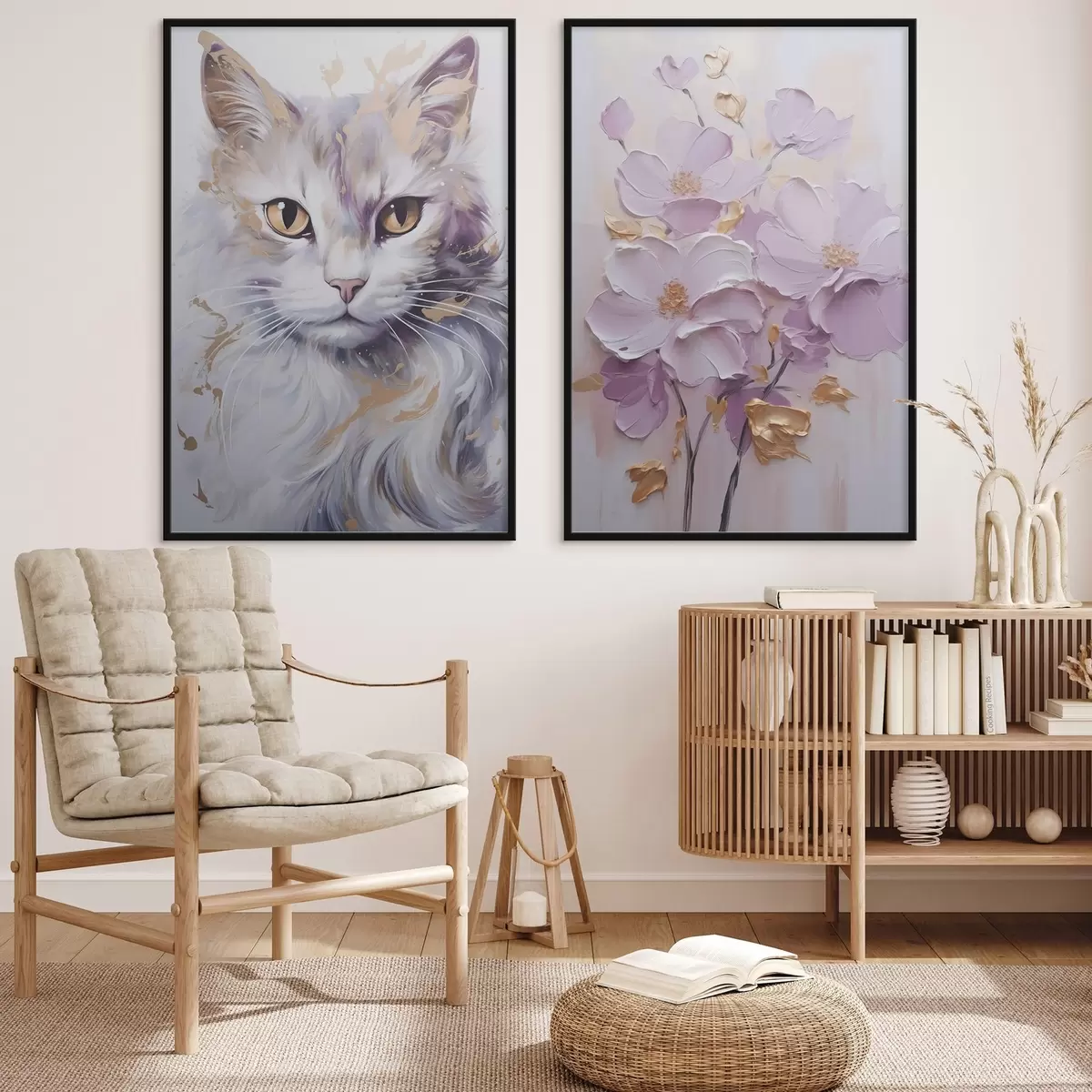 Poster Abstrakte Blumen und eine Katze Nr d01056