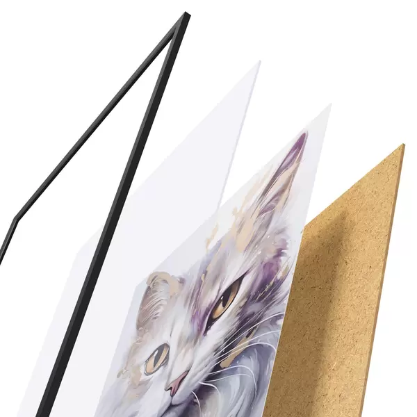 Das Poster besteht aus einem Rahmen, Plexiglas, einem gedruckten Bild und einer Rückwand aus Spanplatten. Dank der Halterungen auf der Rückseite kann das Poster sofort an die Wand gehängt werden.
