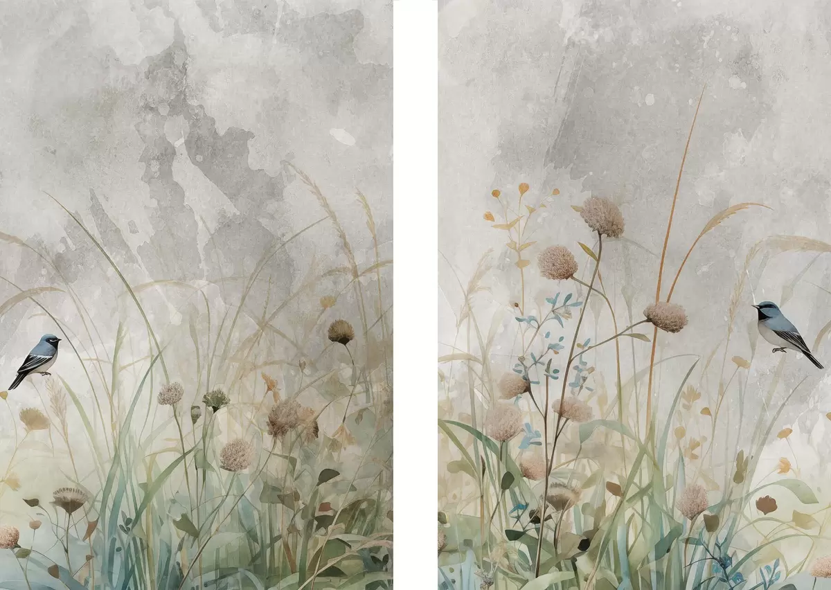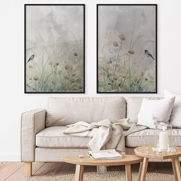 Poster Vögel vor einem Hintergrund aus Wildblumen Nr d01068
