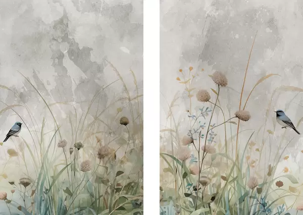 Poster Vögel vor einem Hintergrund aus Wildblumen Nr d01068
