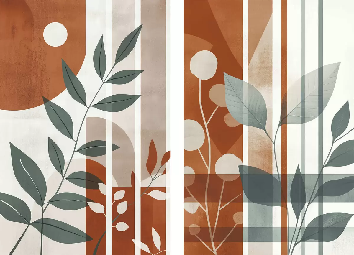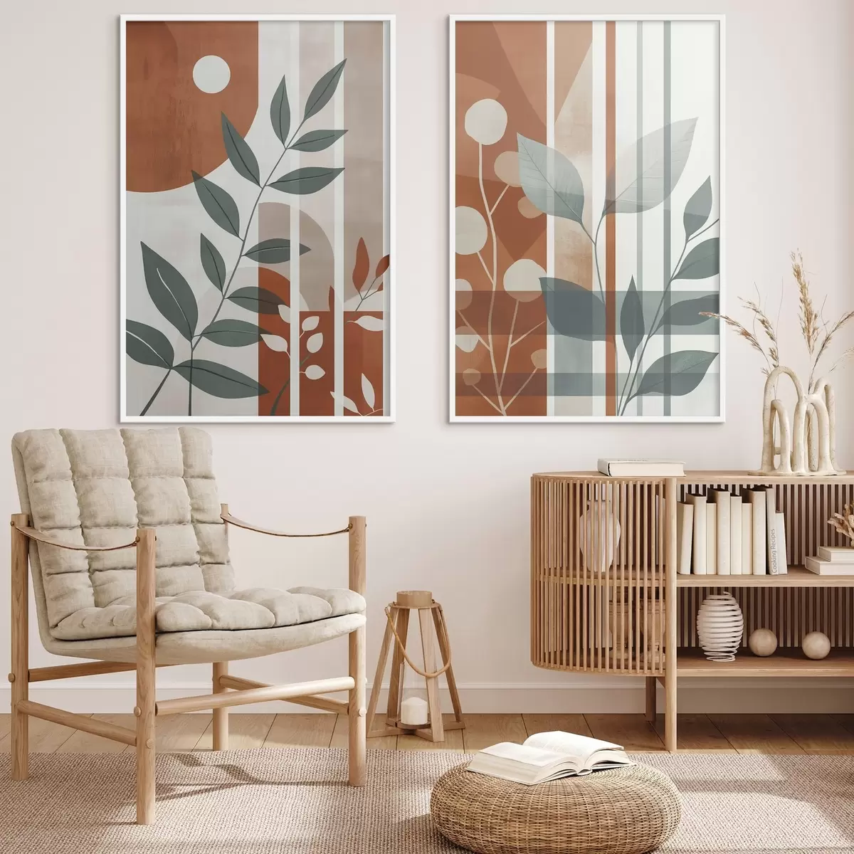 Poster Abstraktion mit Zweigen und Blättern d01074