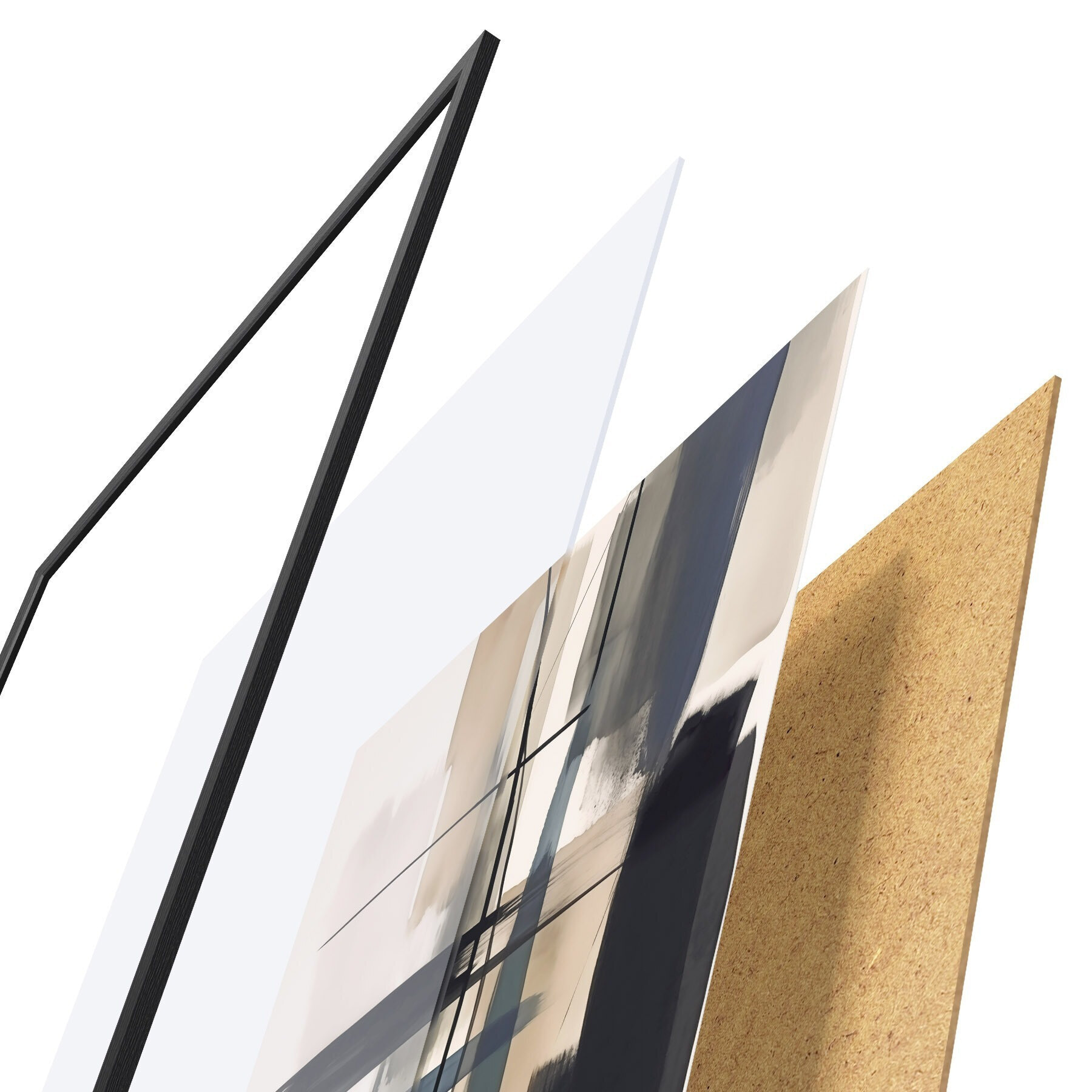 Das Poster besteht aus einem Rahmen, Plexiglas, einem gedruckten Bild und einer Rückwand aus Spanplatten. Dank der Halterungen auf der Rückseite kann das Poster sofort an die Wand gehängt werden.