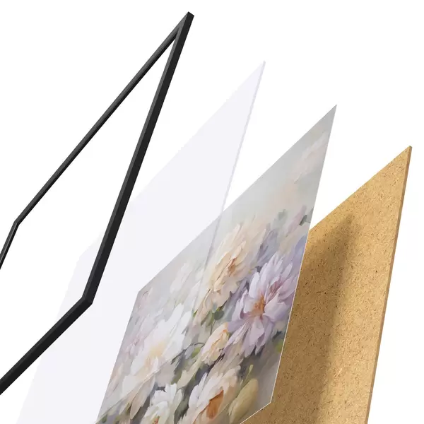 Das Poster besteht aus einem Rahmen, Plexiglas, einem gedruckten Bild und einer Rückwand aus Spanplatten. Dank der Halterungen auf der Rückseite kann das Poster sofort an die Wand gehängt werden.