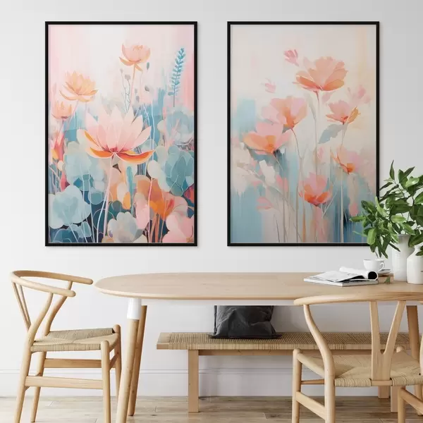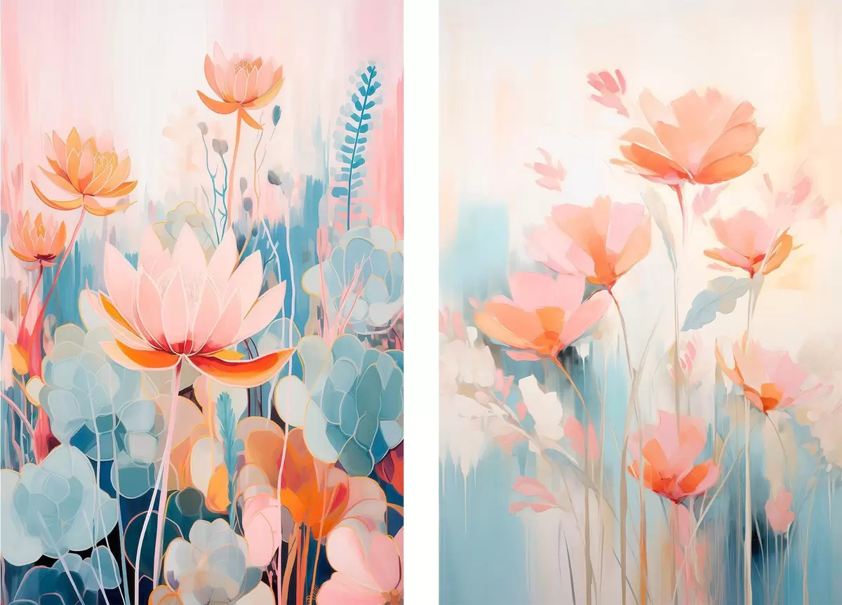 Poster Aquarellharmonie von Blumen in einer rosa-blauen Farbpalette Nr d01084