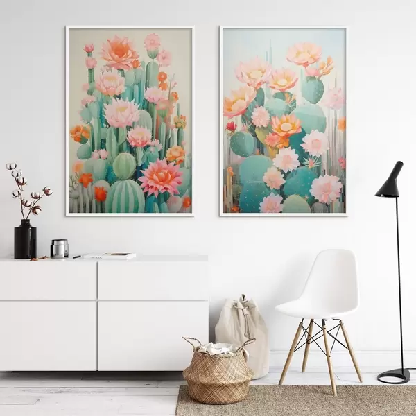 Poster Kakteen mit großen Blüten, Pastellfarben und einer ruhigen Ausstrahlung Nr d01086