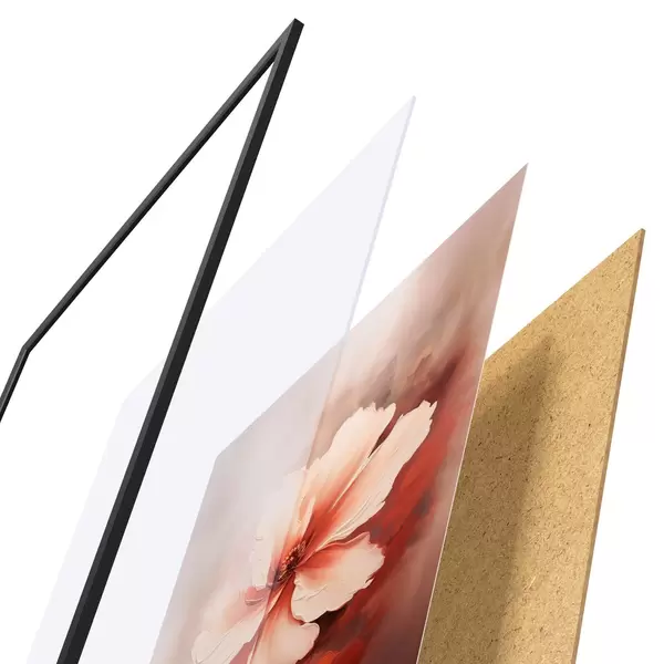 Das Poster besteht aus einem Rahmen, Plexiglas, einem gedruckten Bild und einer Rückwand aus Spanplatten. Dank der Halterungen auf der Rückseite kann das Poster sofort an die Wand gehängt werden.