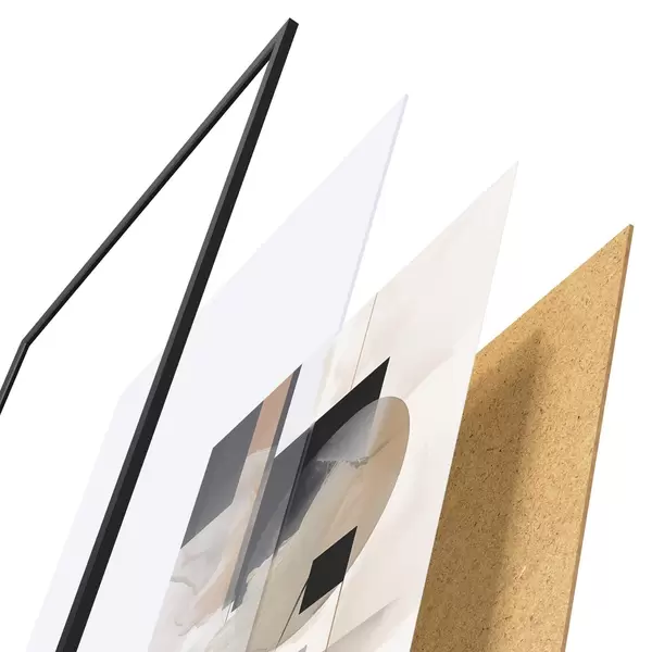 Das Poster besteht aus einem Rahmen, Plexiglas, einem gedruckten Bild und einer Rückwand aus Spanplatten. Dank der Halterungen auf der Rückseite kann das Poster sofort an die Wand gehängt werden.