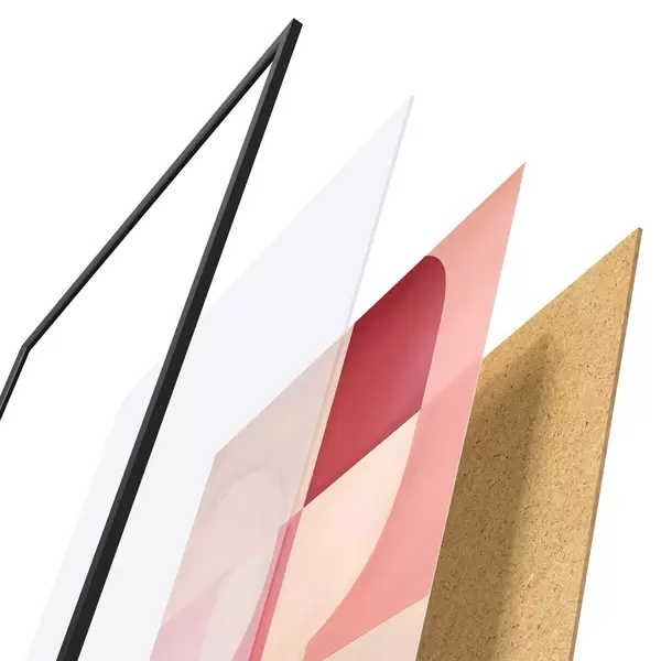 Das Poster besteht aus einem Rahmen, Plexiglas, einem gedruckten Bild und einer Rückwand aus Spanplatten. Dank der Halterungen auf der Rückseite kann das Poster sofort an die Wand gehängt werden.