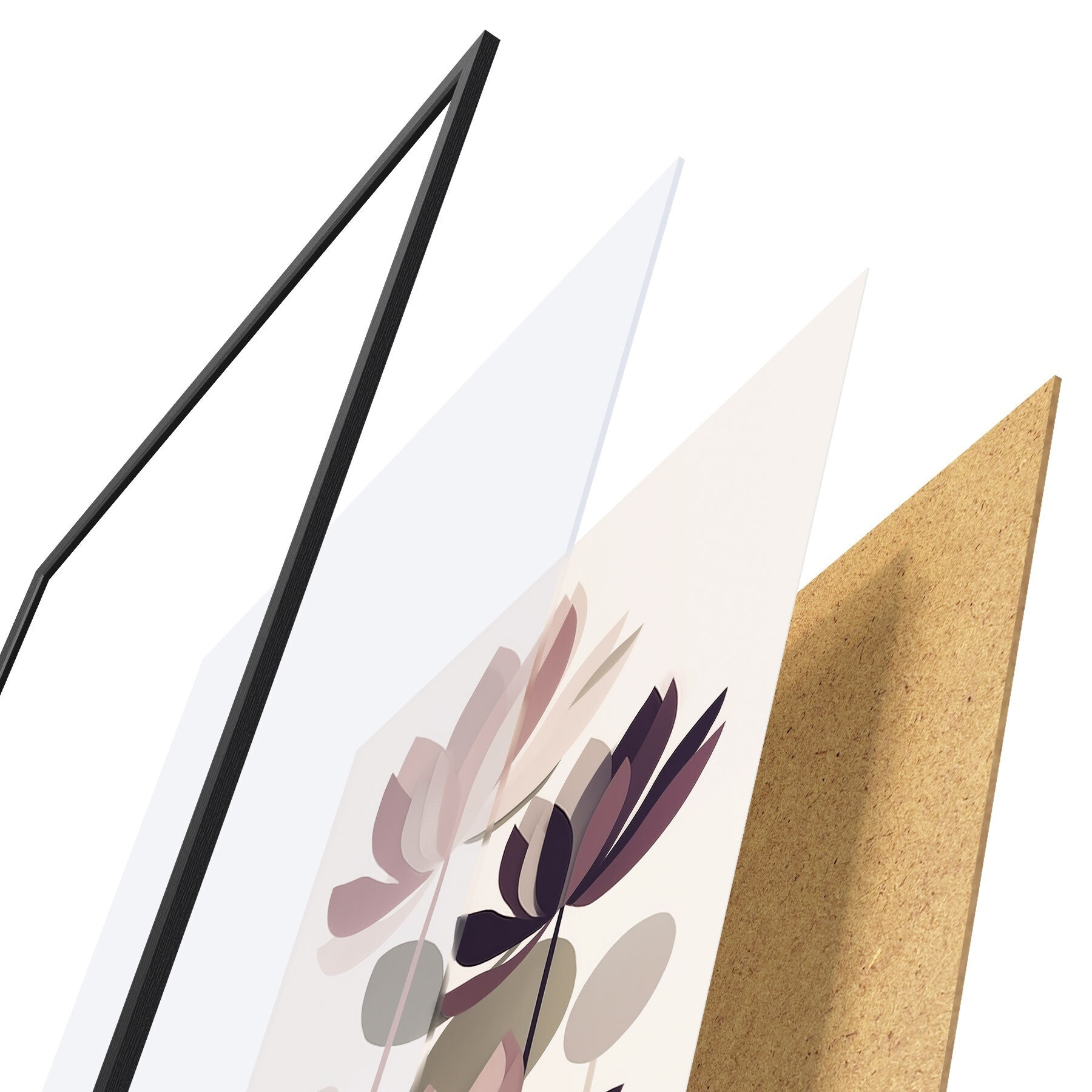 Das Poster besteht aus einem Rahmen, Plexiglas, einem gedruckten Bild und einer Rückwand aus Spanplatten. Dank der Halterungen auf der Rückseite kann das Poster sofort an die Wand gehängt werden.