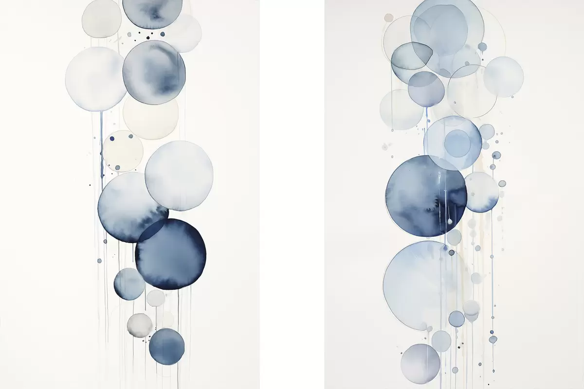 Poster Abstrakte, strukturierte blaue und weiße Wasserfarbenkreise unterschiedlicher Größe vor weißem Hintergrund d01118