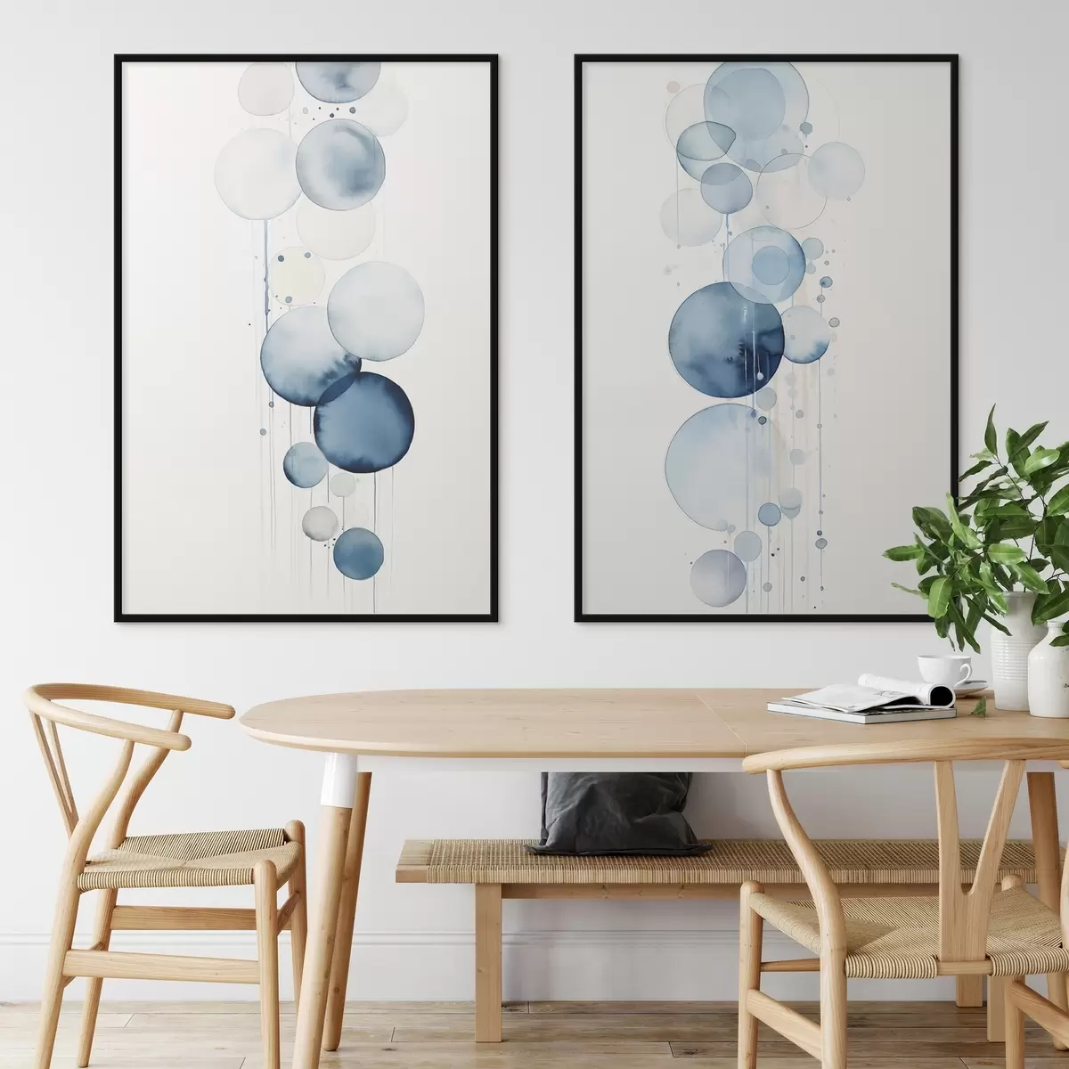 Poster Abstrakte, strukturierte blaue und weiße Wasserfarbenkreise unterschiedlicher Größe vor weißem Hintergrund Nr d01118