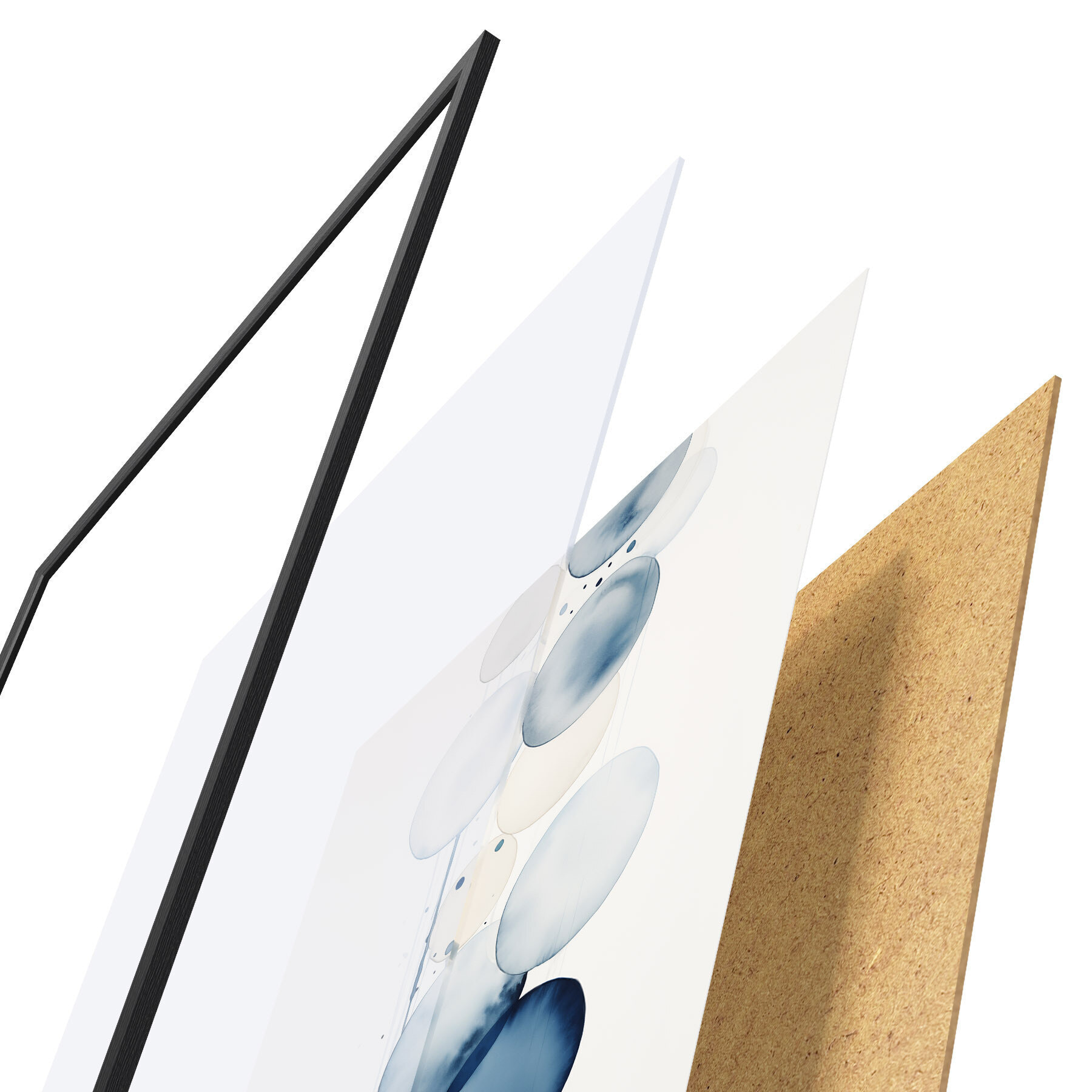 Das Poster besteht aus einem Rahmen, Plexiglas, einem gedruckten Bild und einer Rückwand aus Spanplatten. Dank der Halterungen auf der Rückseite kann das Poster sofort an die Wand gehängt werden.