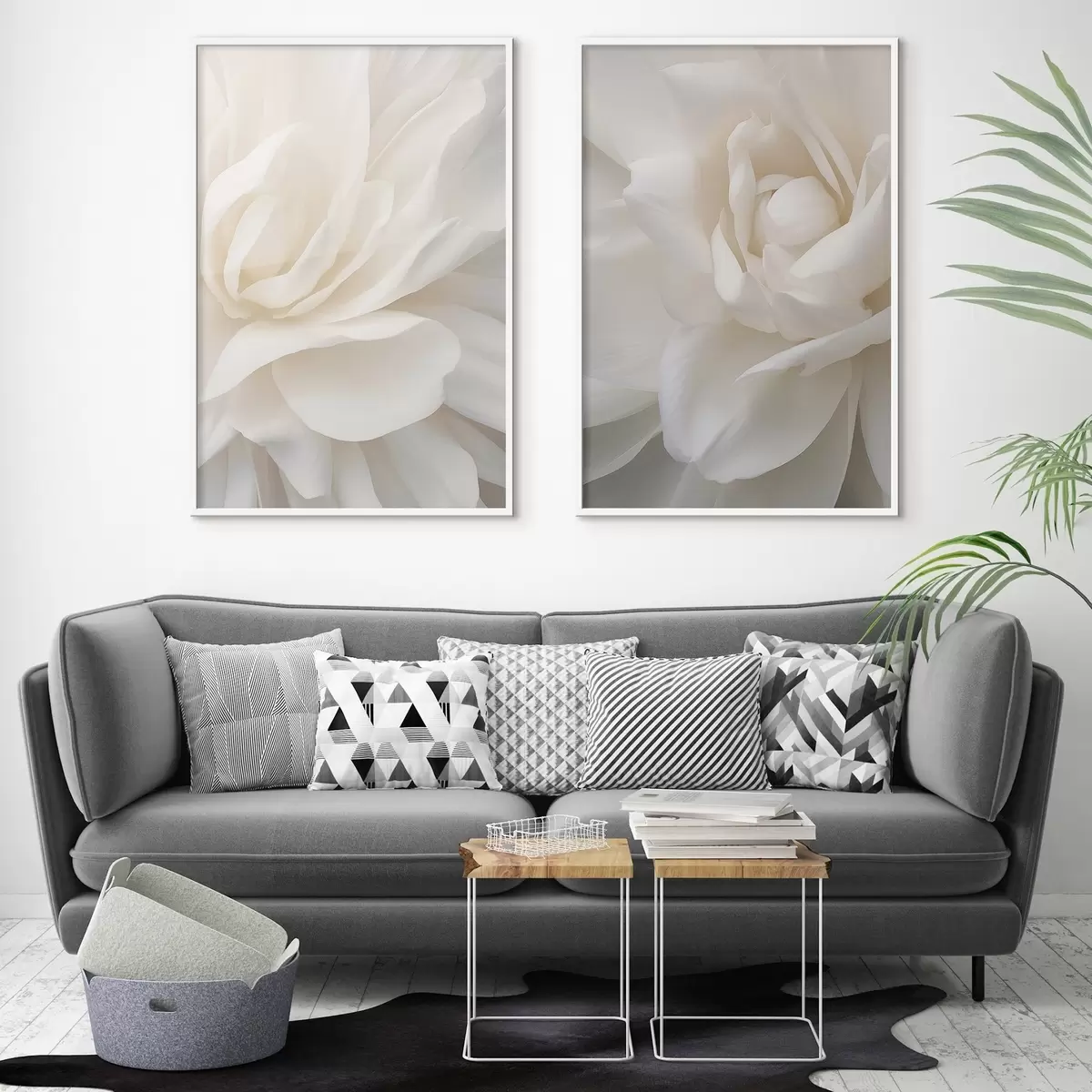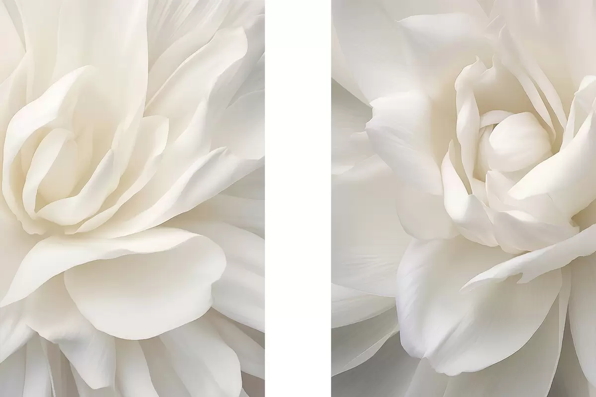 Poster Abstrakte weiße Blume mit zarten, geschichteten Blütenblättern, minimalistische Kunst d01120