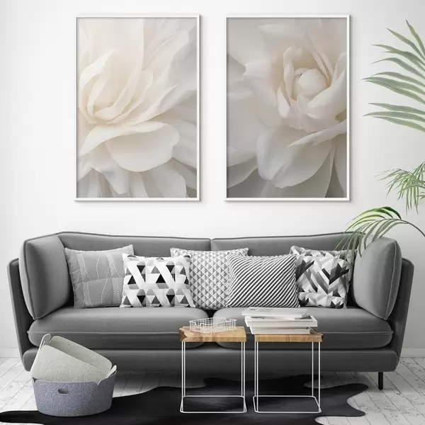 Poster Abstrakte weiße Blume mit zarten, geschichteten Blütenblättern, minimalistische Kunst Nr d01120