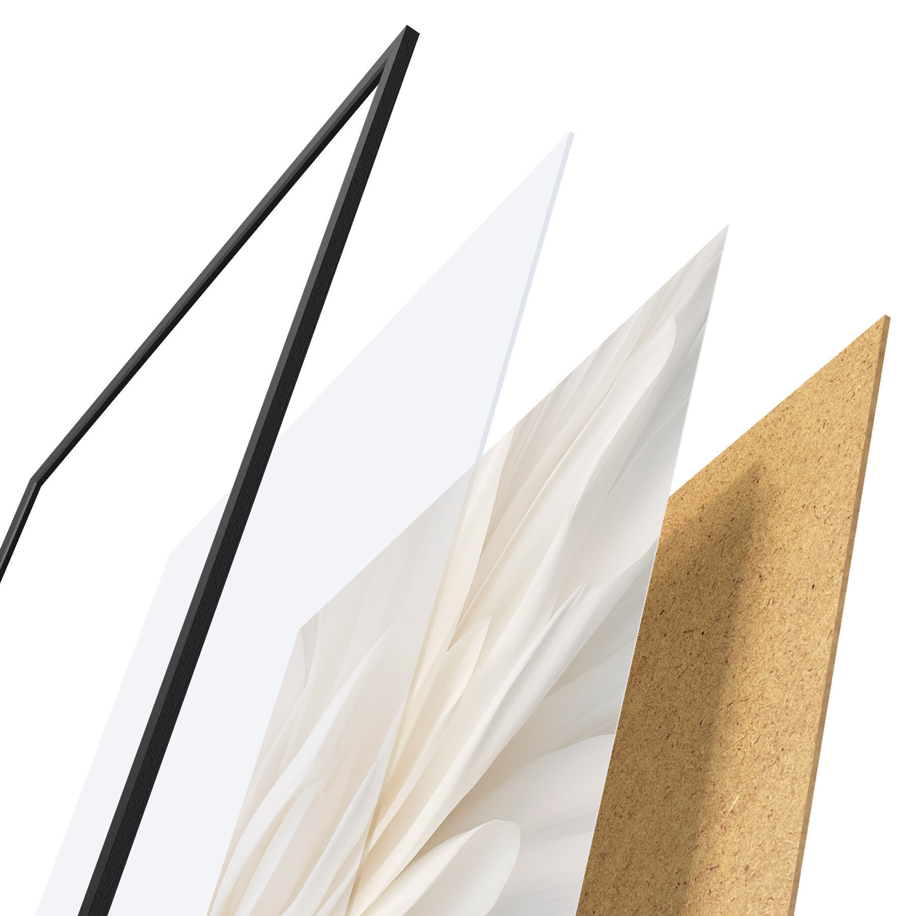 Das Poster besteht aus einem Rahmen, Plexiglas, einem gedruckten Bild und einer Rückwand aus Spanplatten. Dank der Halterungen auf der Rückseite kann das Poster sofort an die Wand gehängt werden.