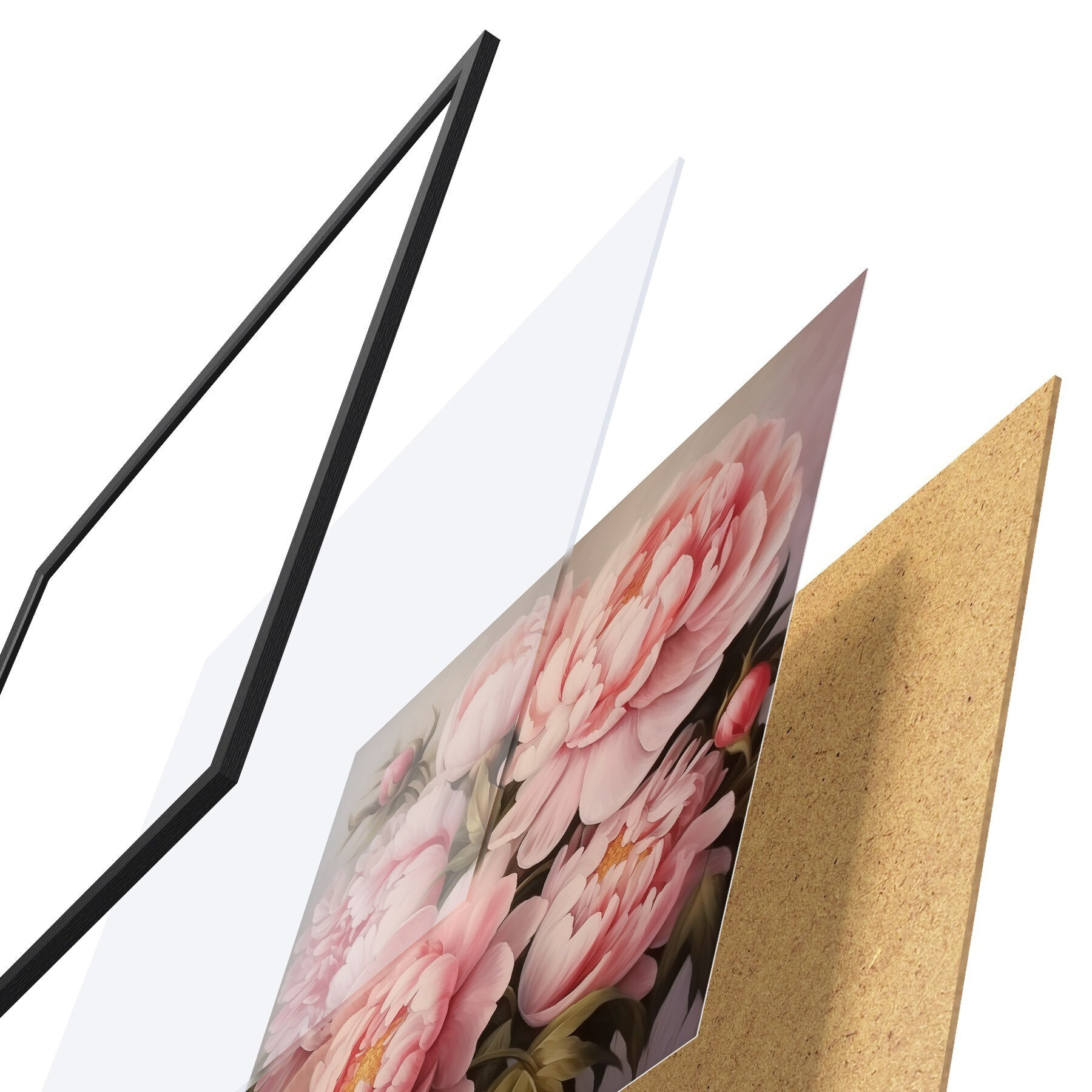 Das Poster besteht aus einem Rahmen, Plexiglas, einem gedruckten Bild und einer Rückwand aus Spanplatten. Dank der Halterungen auf der Rückseite kann das Poster sofort an die Wand gehängt werden.