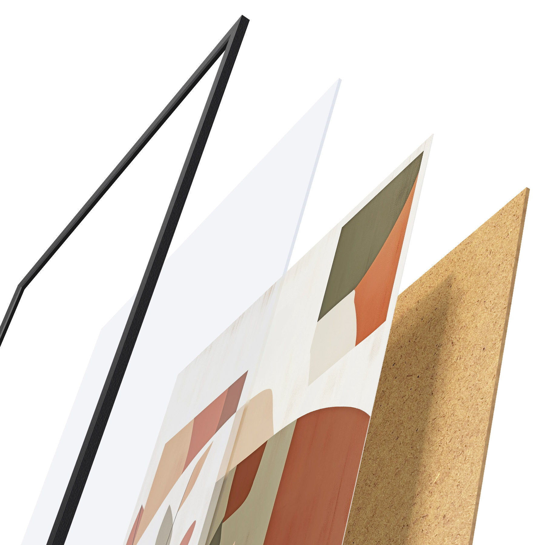 Das Poster besteht aus einem Rahmen, Plexiglas, einem gedruckten Bild und einer Rückwand aus Spanplatten. Dank der Halterungen auf der Rückseite kann das Poster sofort an die Wand gehängt werden.