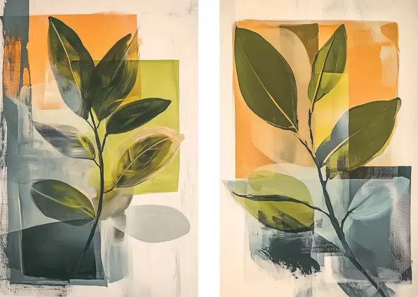 Poster Zweige mit Blättern auf abstraktem Hintergrund Nr d01132
