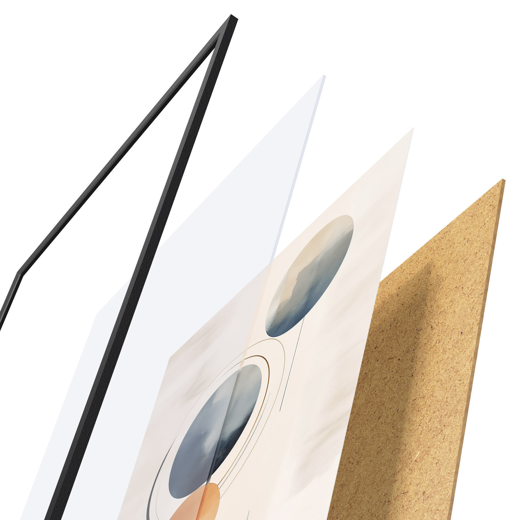 Das Poster besteht aus einem Rahmen, Plexiglas, einem gedruckten Bild und einer Rückwand aus Spanplatten. Dank der Halterungen auf der Rückseite kann das Poster sofort an die Wand gehängt werden.