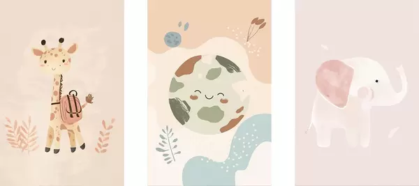 Poster Erde, Giraffe und Elefant Nr d01135