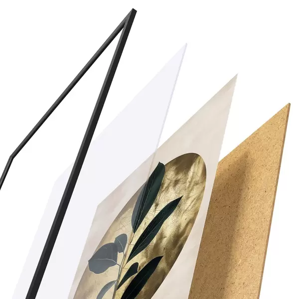 Das Poster besteht aus einem Rahmen, Plexiglas, einem gedruckten Bild und einer Rückwand aus Spanplatten. Dank der Halterungen auf der Rückseite kann das Poster sofort an die Wand gehängt werden.