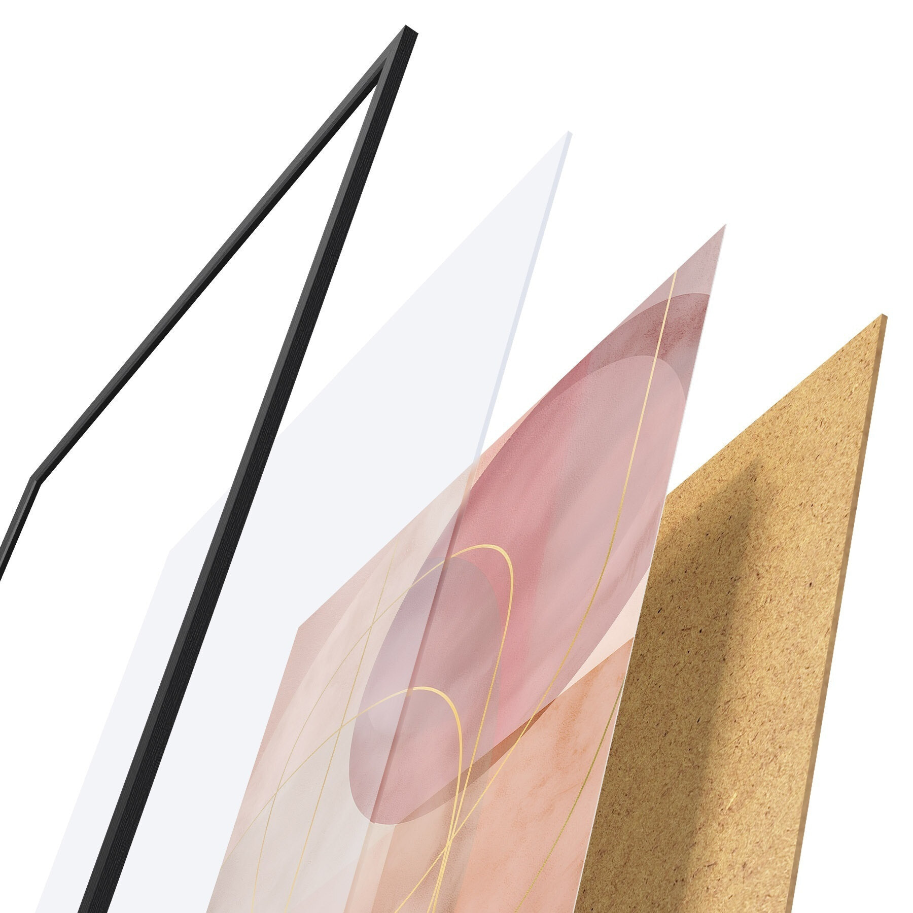 Das Poster besteht aus einem Rahmen, Plexiglas, einem gedruckten Bild und einer Rückwand aus Spanplatten. Dank der Halterungen auf der Rückseite kann das Poster sofort an die Wand gehängt werden.