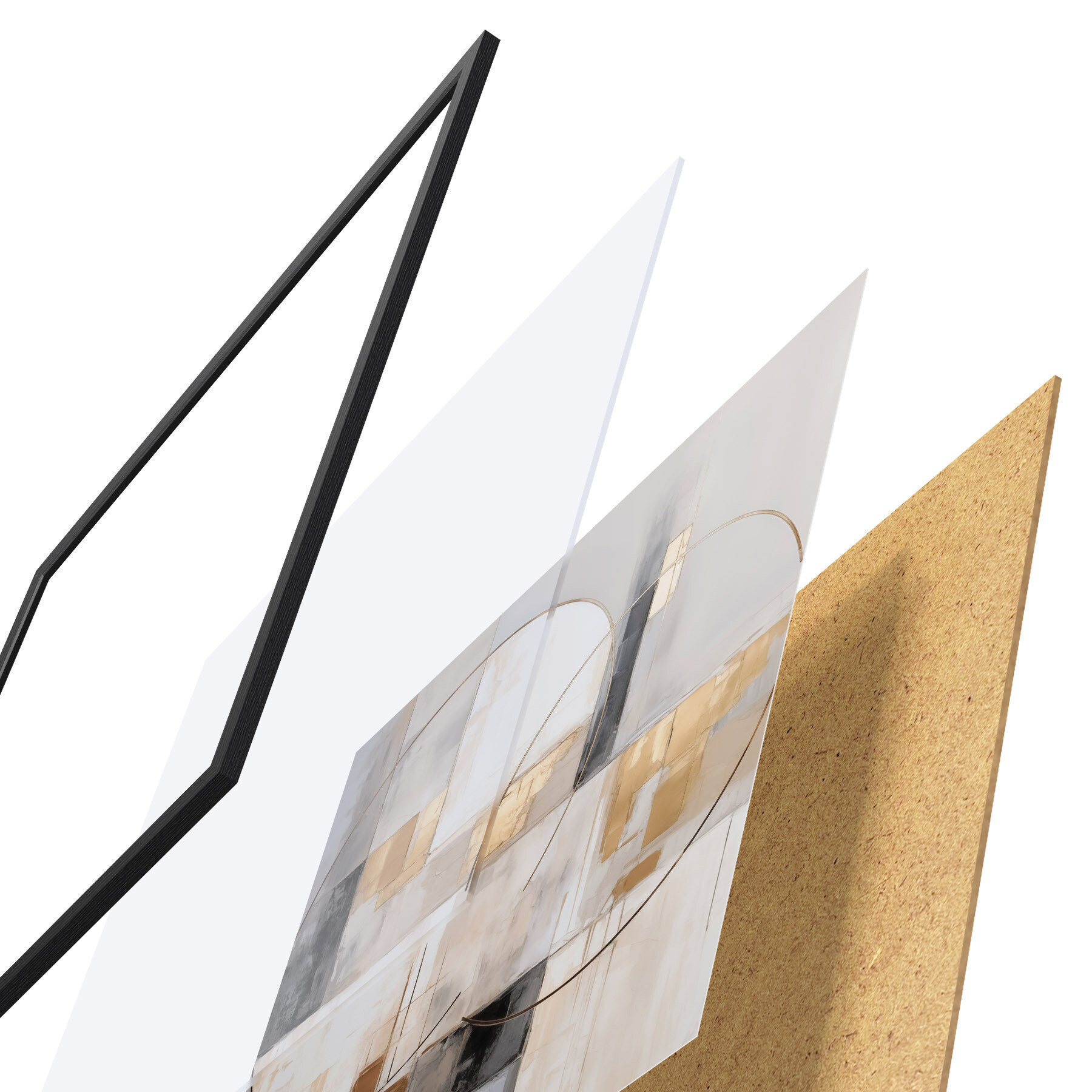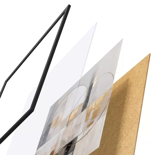 Das Poster besteht aus einem Rahmen, Plexiglas, einem gedruckten Bild und einer Rückwand aus Spanplatten. Dank der Halterungen auf der Rückseite kann das Poster sofort an die Wand gehängt werden.