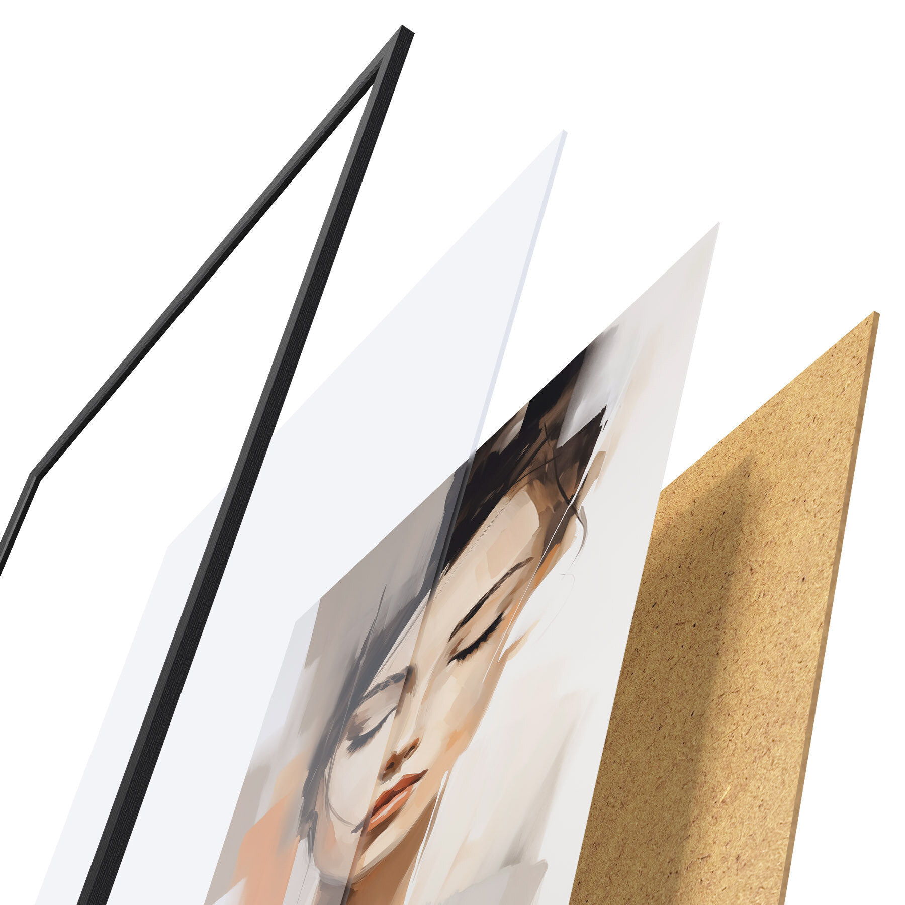 Das Poster besteht aus einem Rahmen, Plexiglas, einem gedruckten Bild und einer Rückwand aus Spanplatten. Dank der Halterungen auf der Rückseite kann das Poster sofort an die Wand gehängt werden.