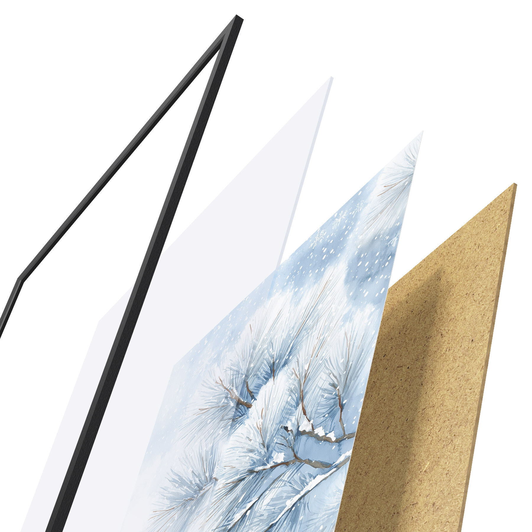 Das Poster besteht aus einem Rahmen, Plexiglas, einem gedruckten Bild und einer Rückwand aus Spanplatten. Dank der Halterungen auf der Rückseite kann das Poster sofort an die Wand gehängt werden.